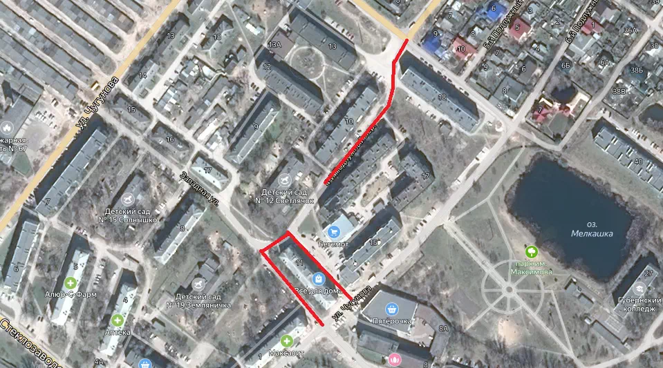- ул.Везломцева (от ул.Чайковского д.16 до ул.Везломцева д.13) г.Бор; Схема