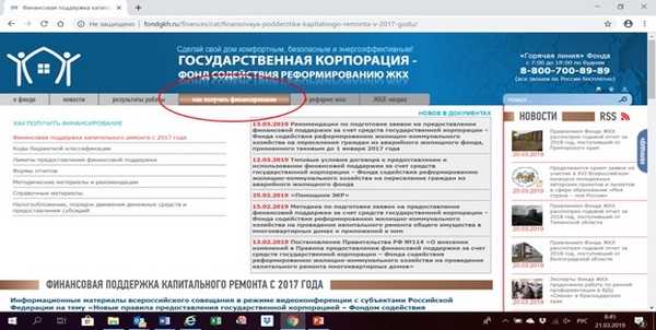 Раздел на сайте Фонда ЖКХ http://fondgkh.ru «Как получить финансирование»