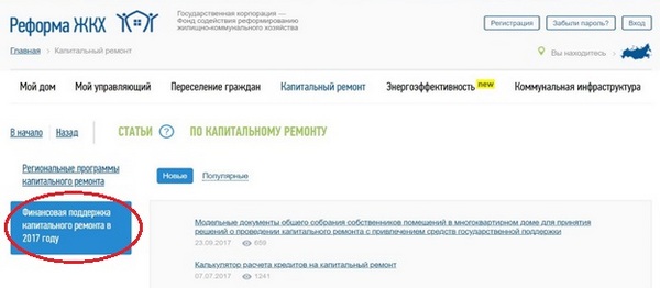 Раздел на сайте «Реформа ЖКХ» «Финансовая поддержка капитального ремонта в 2017 году» https://www.reformagkh.ru/overhaul/articles?category=1697&sort=pubFrom .