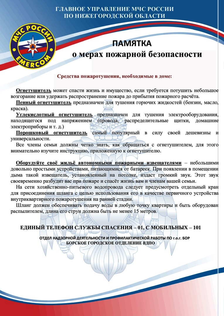 Памятка о мерах пожарной безопасности в жилых домах (квартирах)
